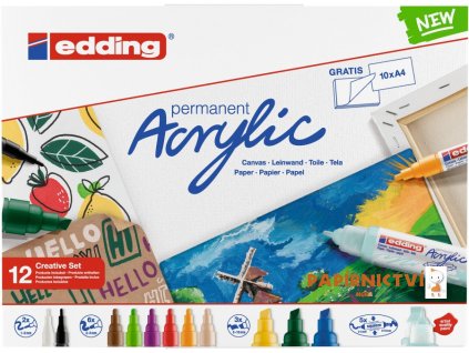 Sada 12 akrylových popisovacu edding 5000 B, 5100 M, 5300 F a 5400 3D v základních barvách pro spontánní kreativitu