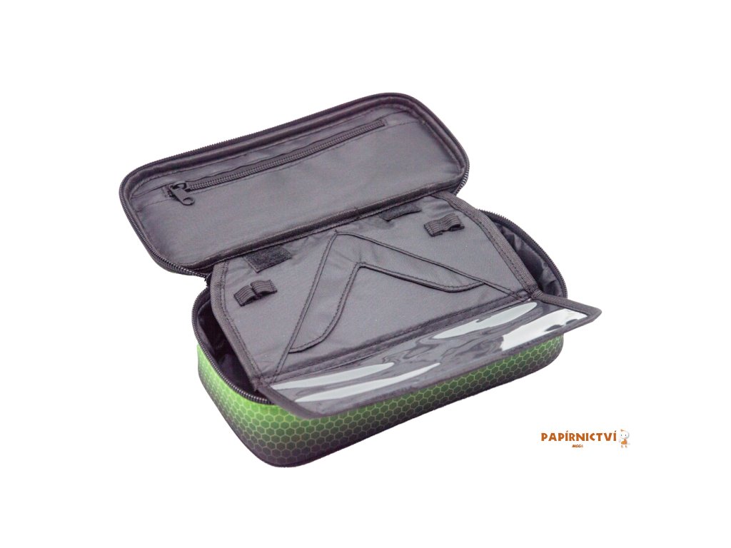 Školní pouzdro je opatřeno pevnými zipy, uzavíratelnou kapsičkou na zip, přihrádkou na pravítko a klopou s šesti poutky na psací potřeby. Pod klopou je místo pro volné uložení psacích potřeb nebo jiných drobností. Vhodné pro školáky na 2. stupni a starší studenty.