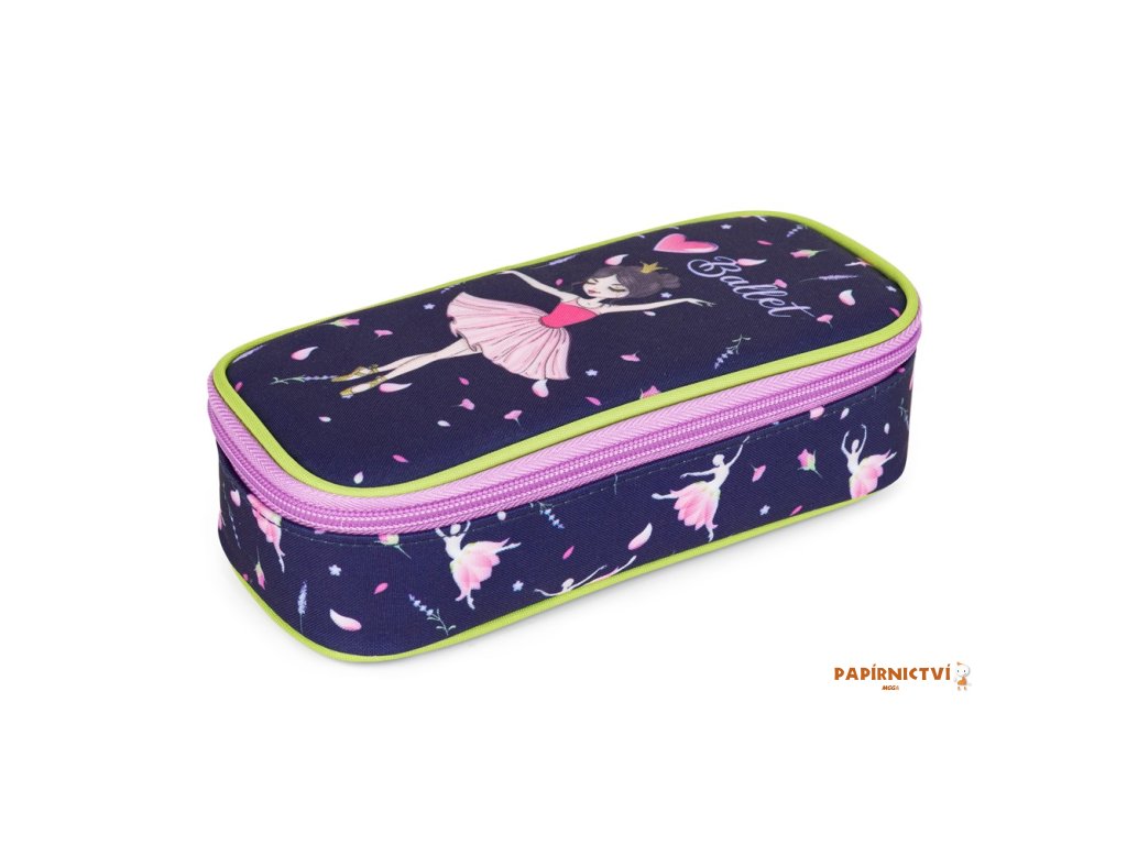 Školní pouzdro etue je opatřeno pevnými zipy, kapsičkou na zip a klopou s pevnými poutky po obou stranách. Pod klopou je místo pro volné uložení psacích potřeb nebo jiných drobností.