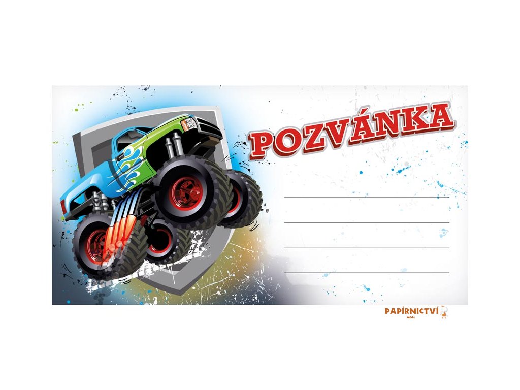 Dětská pozvánka na oslavu s obrázkem Monster tracku.