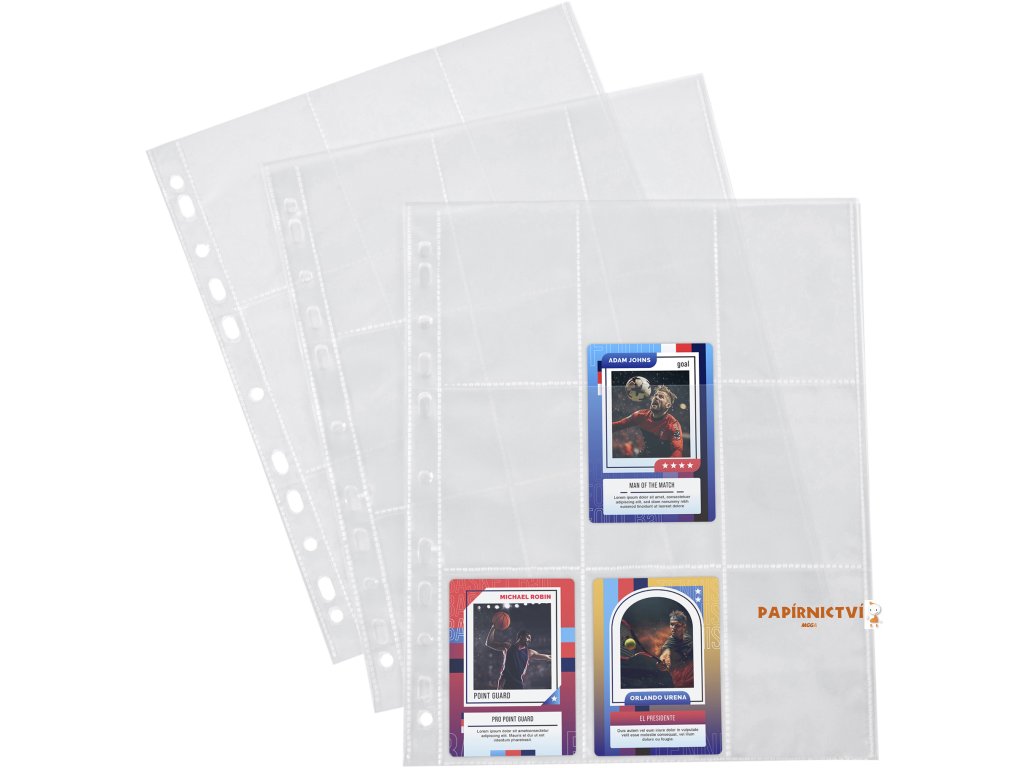 - závěsné kapsy A4 na hrací nebo sběratelské karty - rozměr 22,7 x 29 cm - pro velikost karet 6,3 x 8,8 cm - 9 kapes na karty na stránce - materiál PP o sílem 80 mikronů - hladký a lesklý povrch - balení po 10 ks