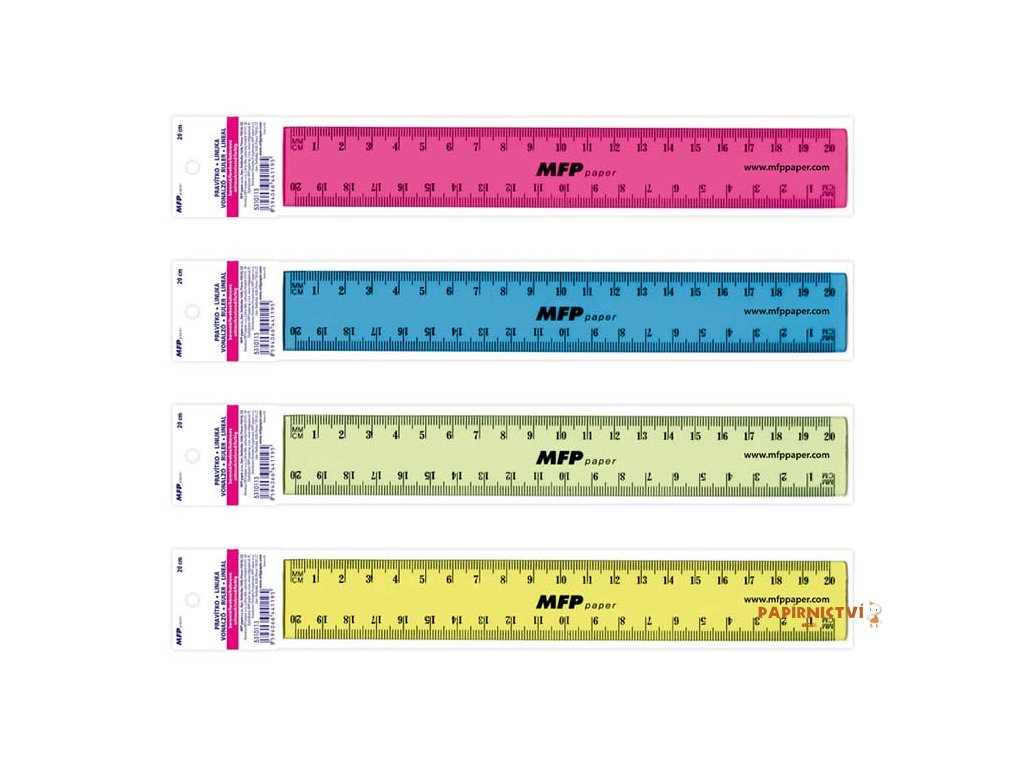 Školní rovné plastové pravítko o délce 20 cm - pomocník při geometrii - ve 4 barvách