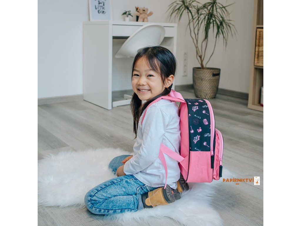 Lehký dětský batůžek jako stvořený na výlety, do školky nebo volnočasové aktivity. Nabízí hlavní přihrádku, přední kapsu na drobnosti a pohodlné polstrované, nastavitelné popruhy. Objem cca 8 litrů, vyroben z odolného polyesteru.