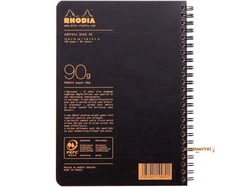 Rhodia Active, Adressbook A5, 80 listů, černý