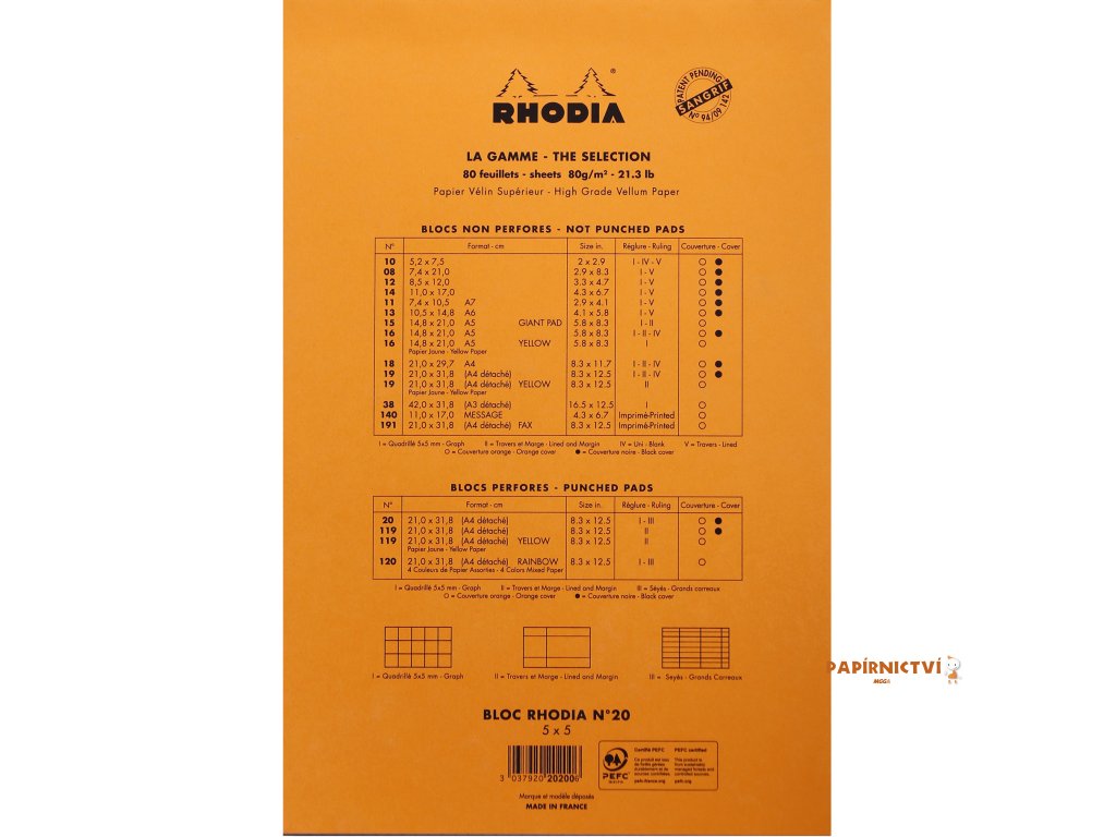 Rhodia Basics, Poznámkový blok A4+, 80 listů, čtvereček 5x5, oranžový