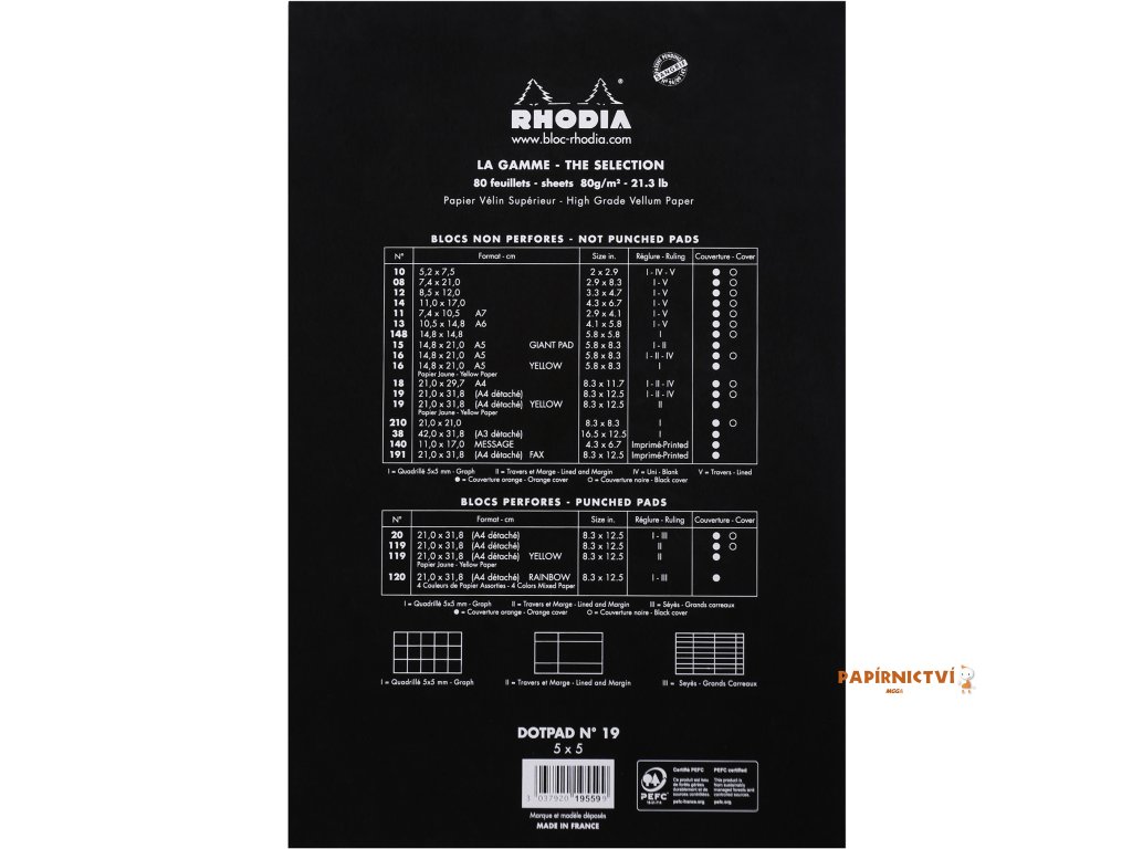 Rhodia Basics, Poznámkový blok A4+, 80 listů, tečky, černý