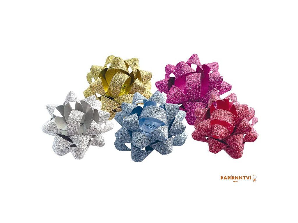 Glittrová rozetka v mixu barev. Ideální pro moderní ozdobení dárku. Rozetka má na spodní straně lepící pásku pomocí které ji připevníte na krabičku.Balení: 50 ks