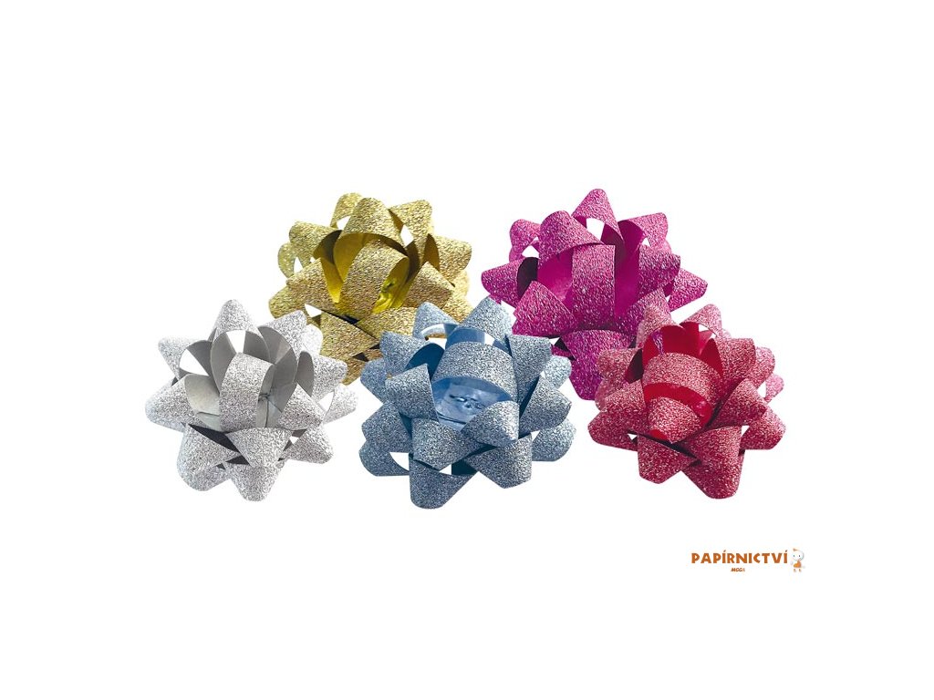Glittrová rozetka v mixu barev. Ideální pro moderní ozdobení dárku. Rozetka má na spodní straně lepící pásku pomocí které ji připevníte na krabičku.Balení: 50 ks