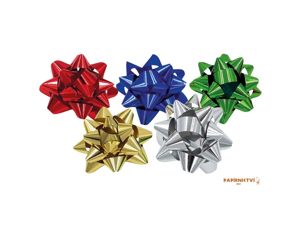 Rozetka v mixu metalických barev. Ideální pro moderní ozdobení dárku. Rozetka má na spodní straně lepící pásku pomocí které ji připevníte na krabičku.Balení: 50 ks