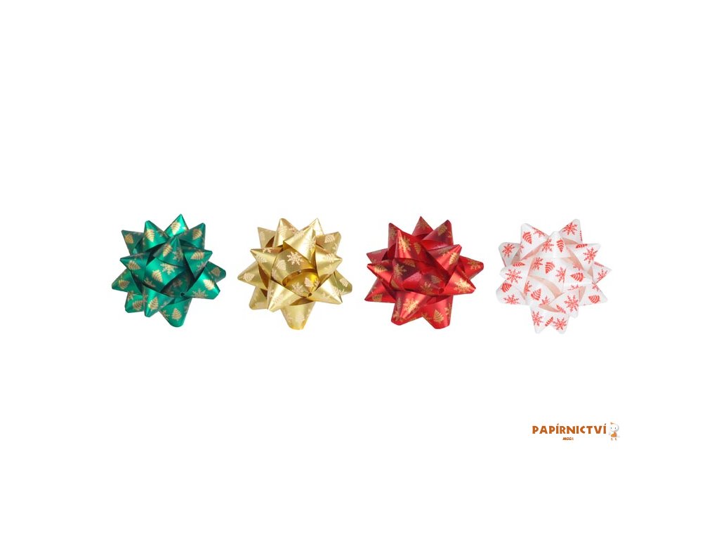 Rozetka s potiskem vloček a stromků v mixu barev. Je ideální pro zdobení dárků a slavnostních balení, dodává jim elegantní a slavnostní vzhled. Obvykle se používá při speciálních příležitostech, jako jsou Vánoce, narozeniny nebo jiné oslavy. Je snadno použitelná díky samolepicí zadní straně.Balení: 50 ks