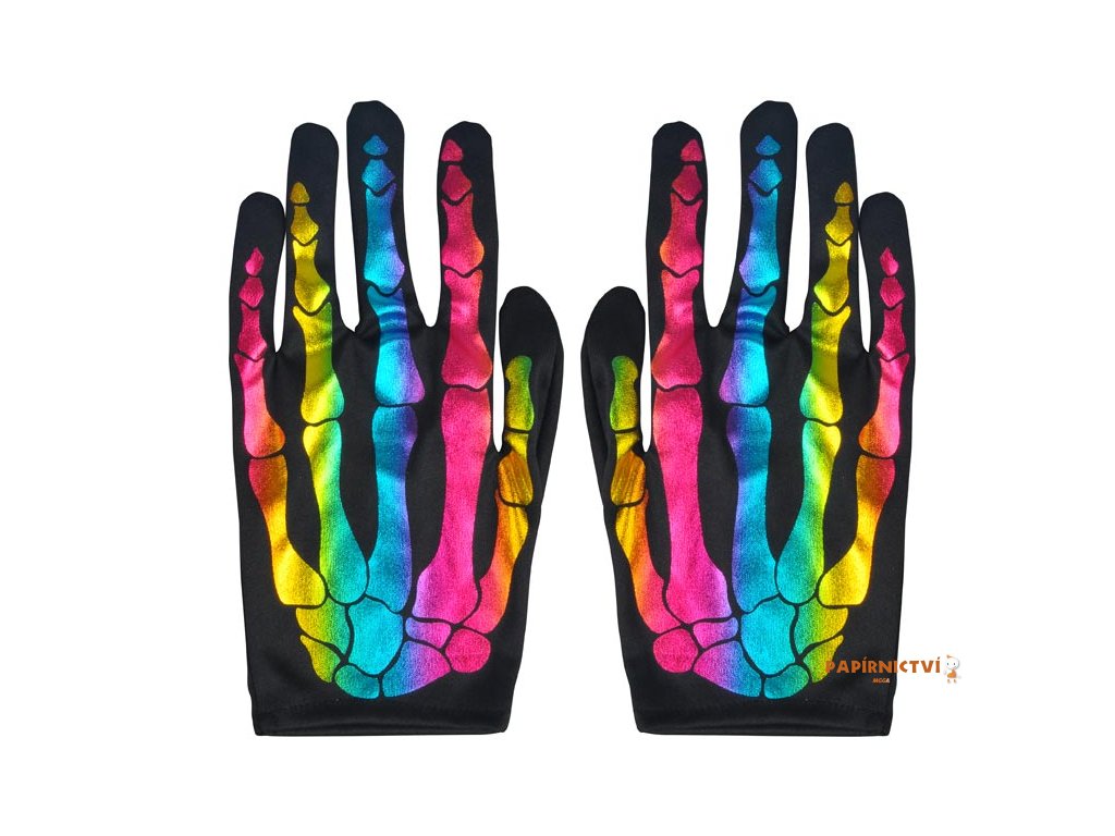 Oživte svůj kostým!Zářivé rukavice s potiskem kostí v duhových barvách dodají vašemu převleku originální šmrnc. Jsou ideální na Halloween, karneval, maškarní večírky nebo tematické párty. Díky elastickému materiálu skvěle padnou a jsou pohodlné i při delším nošení.