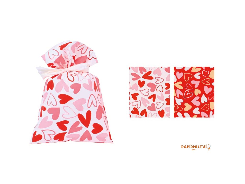 Dárkový sáček v bílé a červené barev s motivem srdíček. Sáček je vyrobený z pevného a kvalitního materiálu. Skvělý na zabalení drobných dárků. Sáček můžete uzavřít vázací stuhou a tím ho dozdobit. V naší nabídce naleznete velký výběr stužek a rozetek, které Vám pomohou při dekoraci balíčku.Motiv: srdce