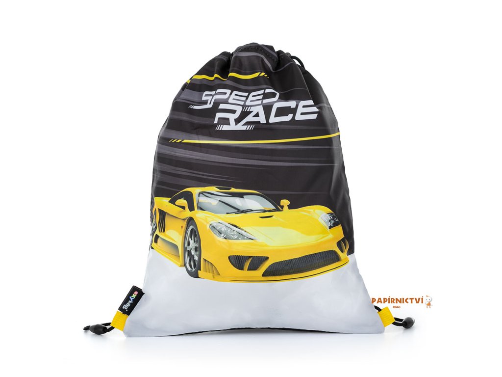 Sáček na přezůvky. Uzavírání stažením šňůrek, možnost nosit i na zádech nebo připevnit ke školnímu batohu. Materiál 100% polyester.