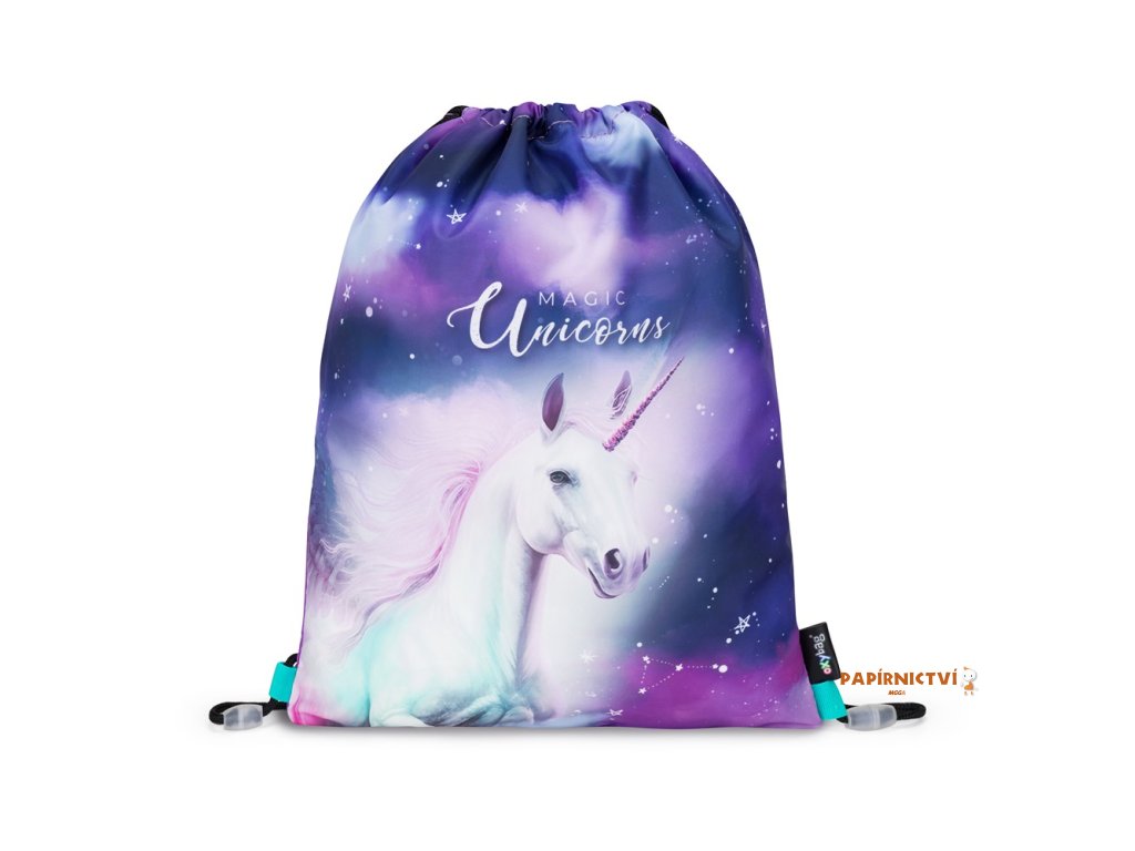Praktický sáček na cvičky nebo přezůvky do školy. Uzavírá se snadno stažením šňůrek a lze ho nosit na zádech jako batůžek nebo připevnit ke školnímu batohu. Vyroben z lehkého a odolného 100% polyesteru.