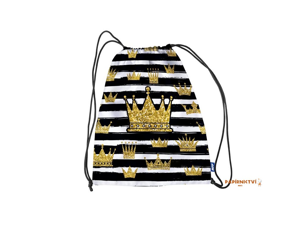 Školní sáček na přezůvky se šňůrkou na zatažení s obrázkem korunek. Pořiďte svým dětem školní vak na přezůvky nebo cvičební úbor. Od této chvíle totiž děti nemusí hledat přezůvky po celé šatně, ale mají je na jednom místě.POUŽITÍ:
