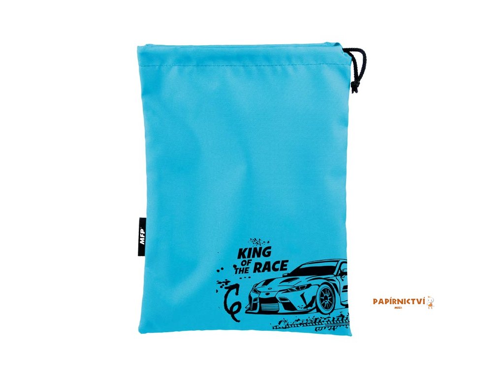 Hledáte způsob, jak uspořádat přezůvky vašeho dítěte stylově a s lehkostí? Tento látkový sáček na přezůvky v modré barvě s motivem závodního auta a nápisem „KING OF THE RACE“ je ideální volbou!Díky jednoduchému designu s praktickým stažením na šňůrku bude vše bezpečně uložené a připravené.