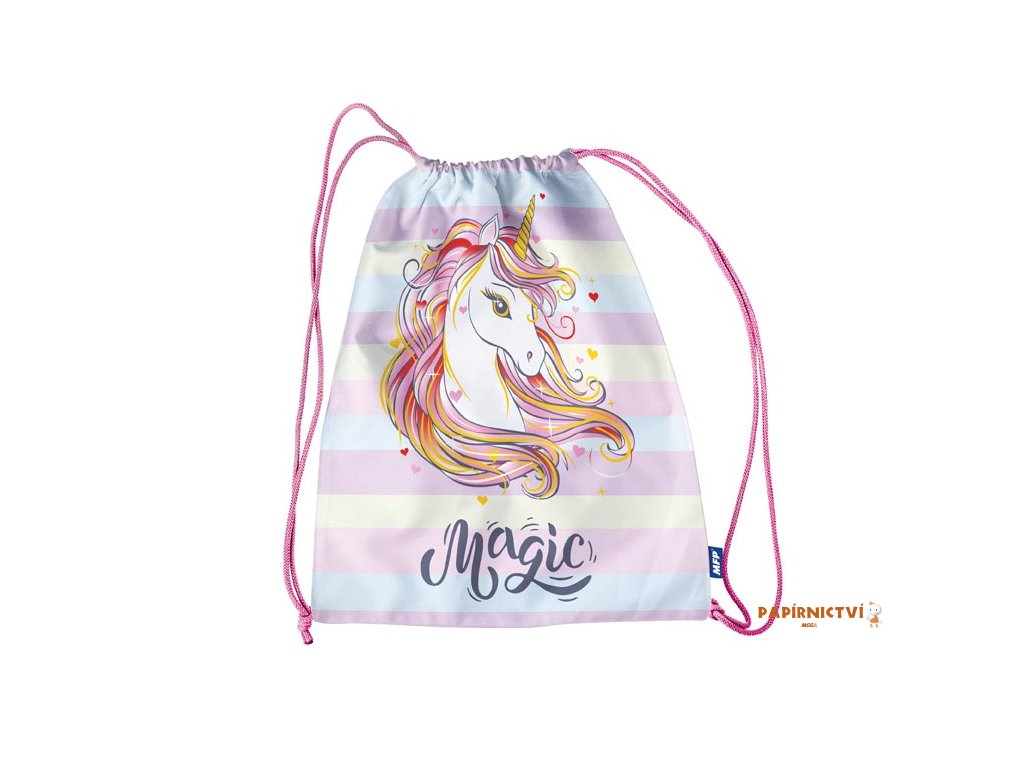 Školní sáček na přezůvky se šňůrkou na zatažení s obrázkem jednorožce. Pořiďte svým dětem školní vak na přezůvky nebo cvičební úbor. Od této chvíle totiž děti nemusí hledat přezůvky po celé šatně, ale mají je na jednom místě.POUŽITÍ: