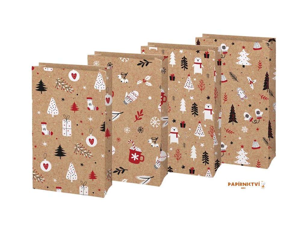 Vánoční dárkový papírový sáček KRAFT 2 vyrobený z pevného kraftového papíru. Je ideální na zabalení malého dárku, sladkostí, oříšků nebo sušeného ovoce. K uzavření sáčku můžete použít dekorativní kolíček, samolepící jmenovku nebo stuhu a vytvořit tak jedinečný dárek.Balení: 12 ks