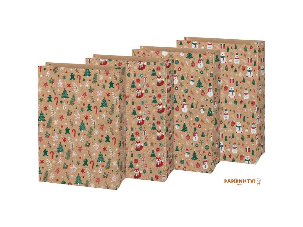 Vánoční papírový sáček KRAFT 4 – přírodní vzhled a vánoční kouzloDarujte dárky s elegancí a bez složitého balení. Vánoční dárkový papírový sáček KRAFT 4 z pevného, ekologického papíru v přírodní hnědé barvě je krásnou a zároveň praktickou volbou. Barevné vánoční motivy – od stromečků a sněhuláků až po roztomilá zvířátka či perníčky – dodají každému dárku sváteční kouzlo.