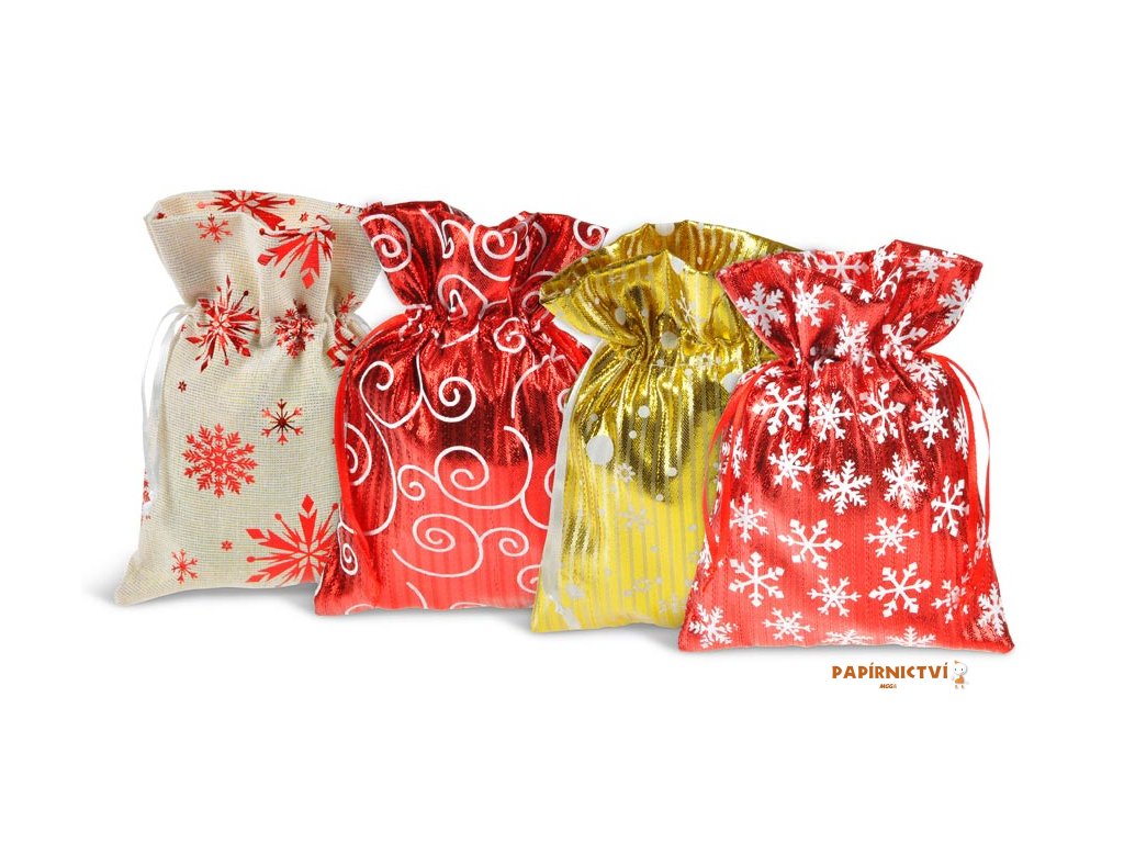 Vánoční látkový dárkový pytlík s vánočnímy motivy. Vyrobeno z příjemné látky. Skvělý na drobné dárky a jiné maličkosti. Sáček má zavírání na stahovací stužku.Balení: 12 ks