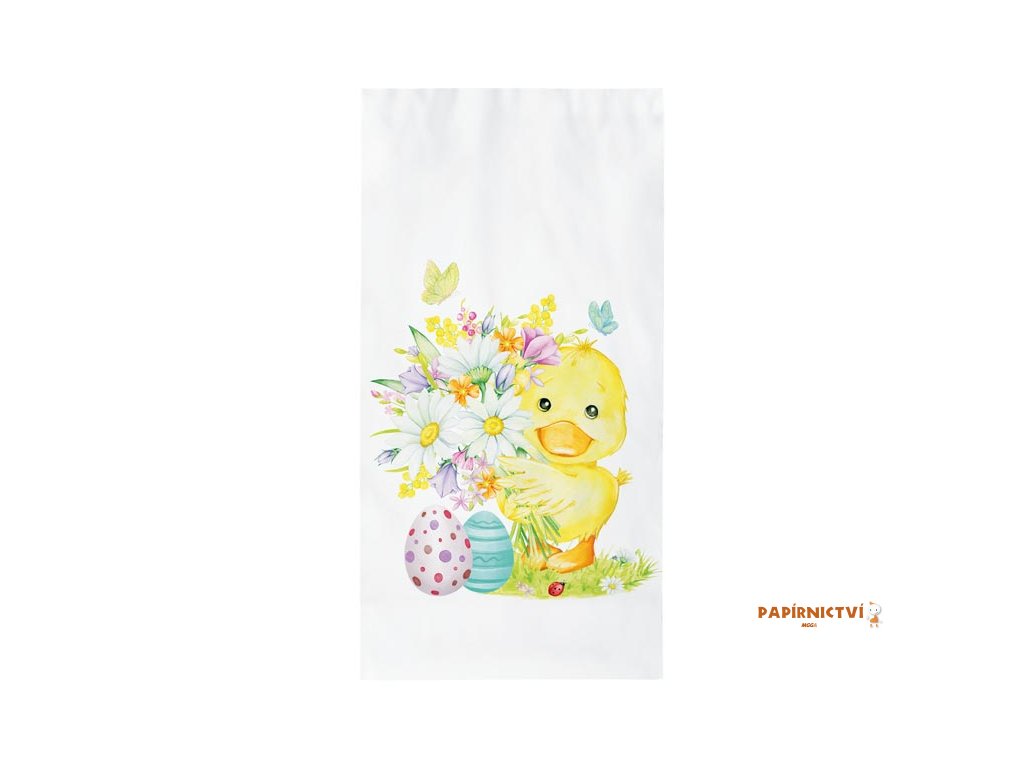 Sáček s velikonočním motivem kachňátka, květin a kraslic. Ideální pro vytváření čokoládových balíčků pro děti!