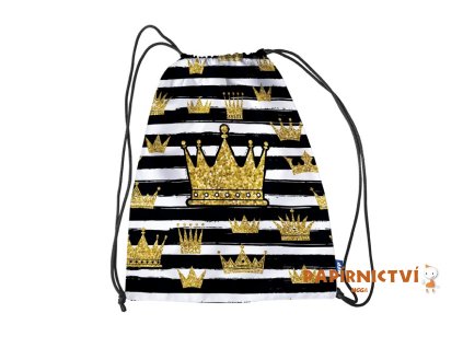Školní sáček na přezůvky se šňůrkou na zatažení s obrázkem korunek. Pořiďte svým dětem školní vak na přezůvky nebo cvičební úbor. Od této chvíle totiž děti nemusí hledat...
