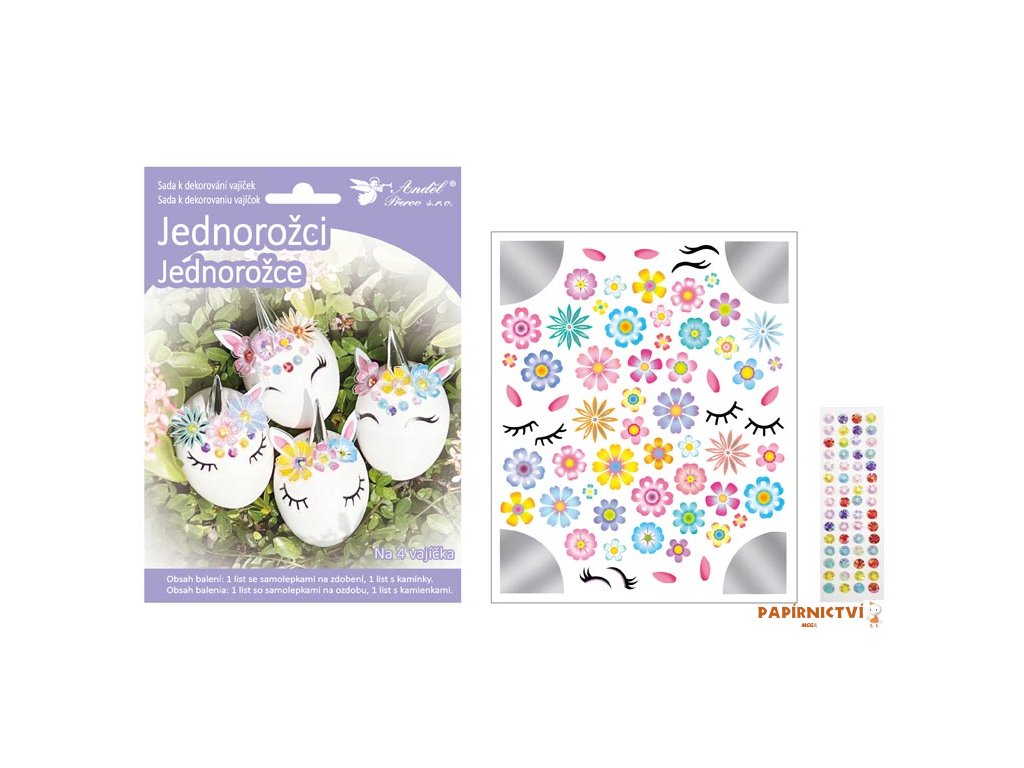 Sada k dekorování 4 ks vajíček - jednorožci. S těmito samolepkami snadno a rychle ozdobíte vajíčko. V momentě vytvoříte z obyčejného vajíčka hlavu jednorožce podle svých představ. Takto netradičně a originálně ozdobená vajíčka budou hlavní ozdobou Velikonoc.BALENÍ OBSAHUJE: