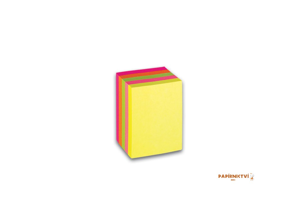 Neonový samolepicí blocek - kostka, 5 barev- žlutá, ružová, zelená, cervená, oranžová, celkem 300 lístku (5x60), ideální pro zanechání vzkazu, instrukcí a pripomínek, nezanechávají stopy, mohou být použity a aplikovány opakovane. Díky speciálnímu lepidlu se blocek po prilepení témer nekroutí - zustává tak pevne prilepen i na svislé ploše. Rozmer 51 x 38mm.Doplňkové parametry