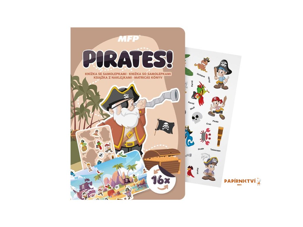 Obsahuje 16 znovupoužitelných samolepek s motivy pravých pirátských hrdinů, pokladů, exotických zvířat a spousty dalších doplňků, které dodají každému příběhu ten správný šmrnc.