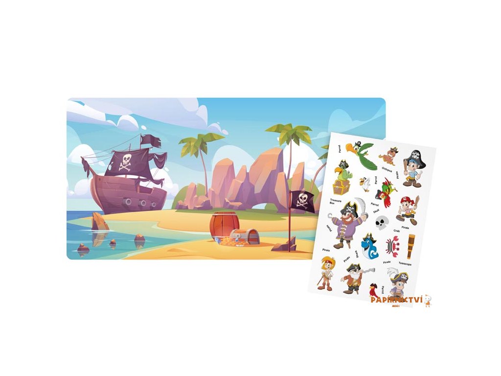 Jedna strana knihy je věnována pečlivému umisťování samolepek do připravených obrysů, zatímco na druhé straně čeká tajemná pirátská scéna, kde mohou děti popustit uzdu své fantazii. Budou bránit poklad před nebezpečnou chobotnicí? Nebo objeví nový ostrov s truhlou plnou zlata? Je to jen na nich!