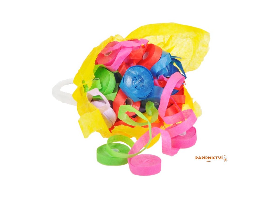 Pytlík s s papírovými serpentýnami pro hození rukou. 29 kusů 6 m dlouhých papírových serpentýn.NÁVOD NA POUŽITÍ: