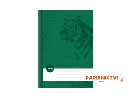 Školní sešit ve formátu A5, čtverečkovaný, v tmavě zelené barvě, s motivem tygra, v deskách z křídového papíru. Oproti běžným čtverečkovaným sešitům je rozměr čtverečků dvakrát...