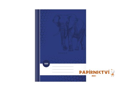 Školní sešit čistý bez linek ve formátu A5, v tmavě fialové barvě, s motivem slona, v deskách z křídového papíru.