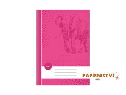 Školní sešit čistý bez linek ve formátu A5, v malinové barvě, s motivem slona, v deskách z křídového papíru.