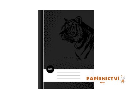 Školní sešit ve formátu A5, čtverečkovaný, v černé barvě, s motivem tygra, v deskách z křídového papíru.