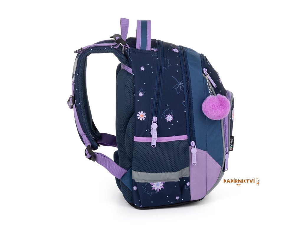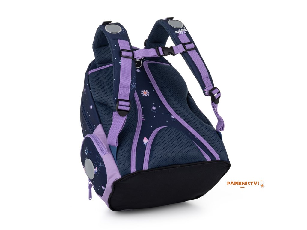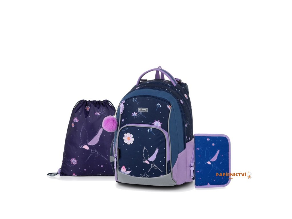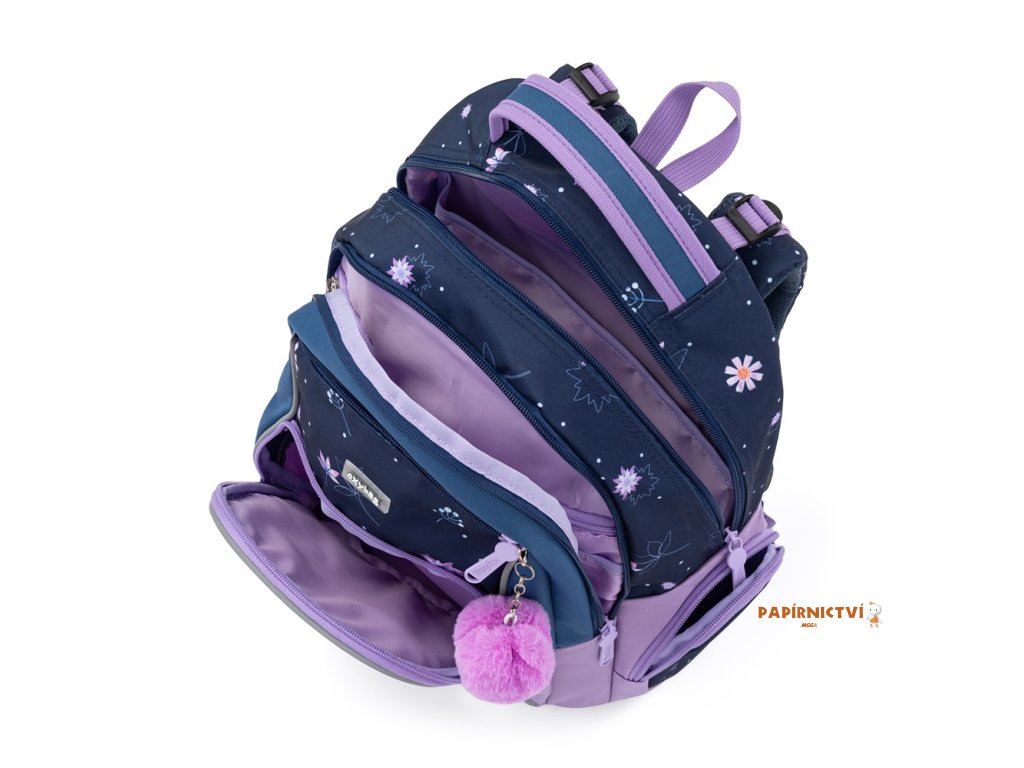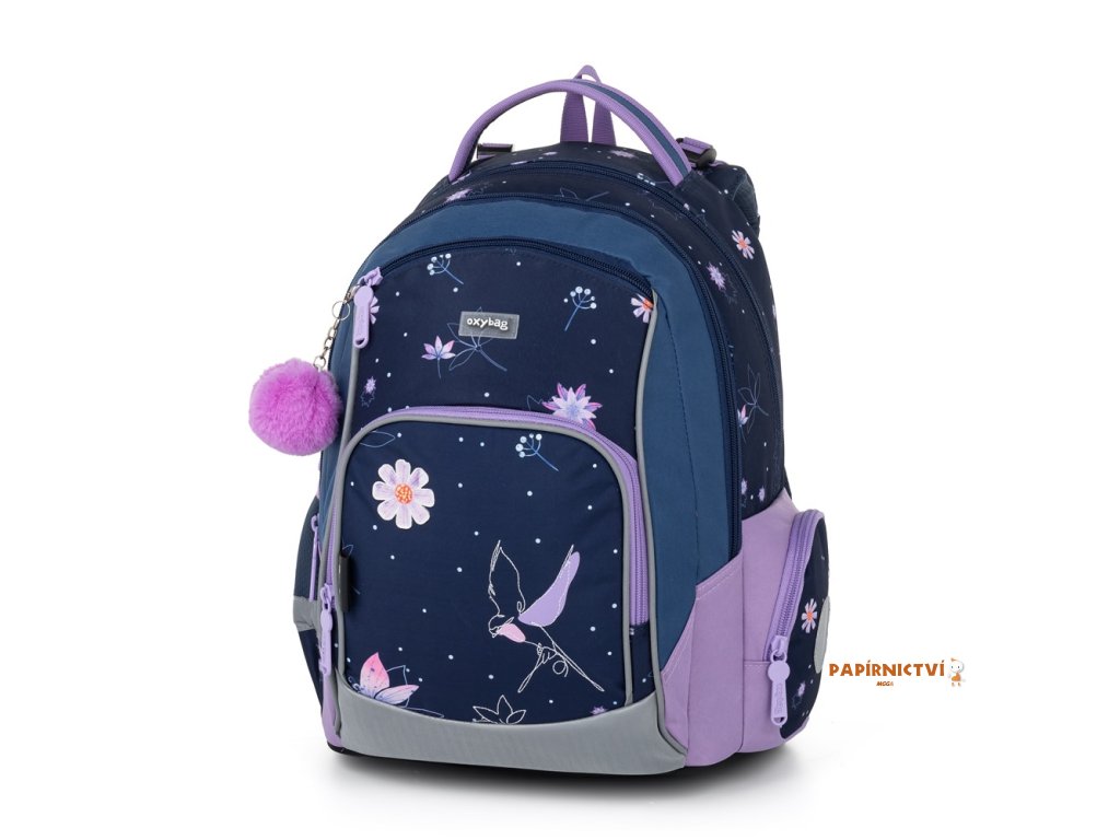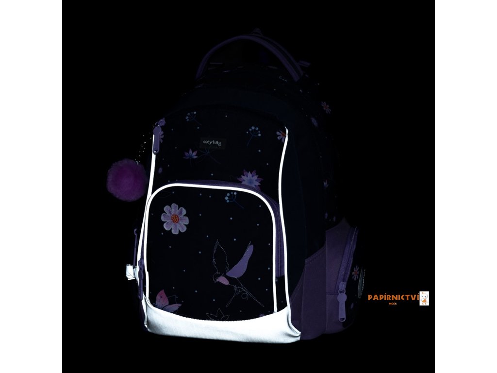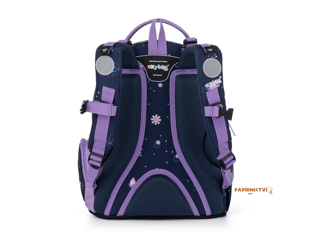 Školní batoh OXY GO zaujme moderním designem a promyšlenou funkčností. Má anatomicky tvarovaná, prodyšná záda a nastavitelné ramenní popruhy pro pohodlné nošení. Přidané háčky umožňují uchycení dlouhých popruhů. Vnitřní kapsy nabízí dostatek místa na učebnice, sešity i další potřeby, pevné nepromokavé dno chrání obsah před ušpiněním a protečením. Boční kapsy, jedna na zip a jedna otevřená, slouží např. na láhev. Reflexní prvky zajišťují bezpečnost. Batoh je ideální pro děti od 1. do 3. třídy vysoké od 125 cm. Délka zádového panelu je 39 cm, objem 22 l, hmotnost 930 g, nosnost 8 kg. Sáček: Praktický na cvičky nebo volnočasové aktivity, uzavírá se šňůrkami. Penál: Jednopatrový se dvěma chlopněmi, poutka na psací potřeby a průhledná fólie na rozvrh hodin.
