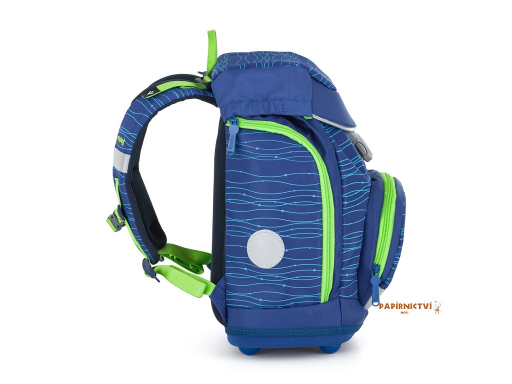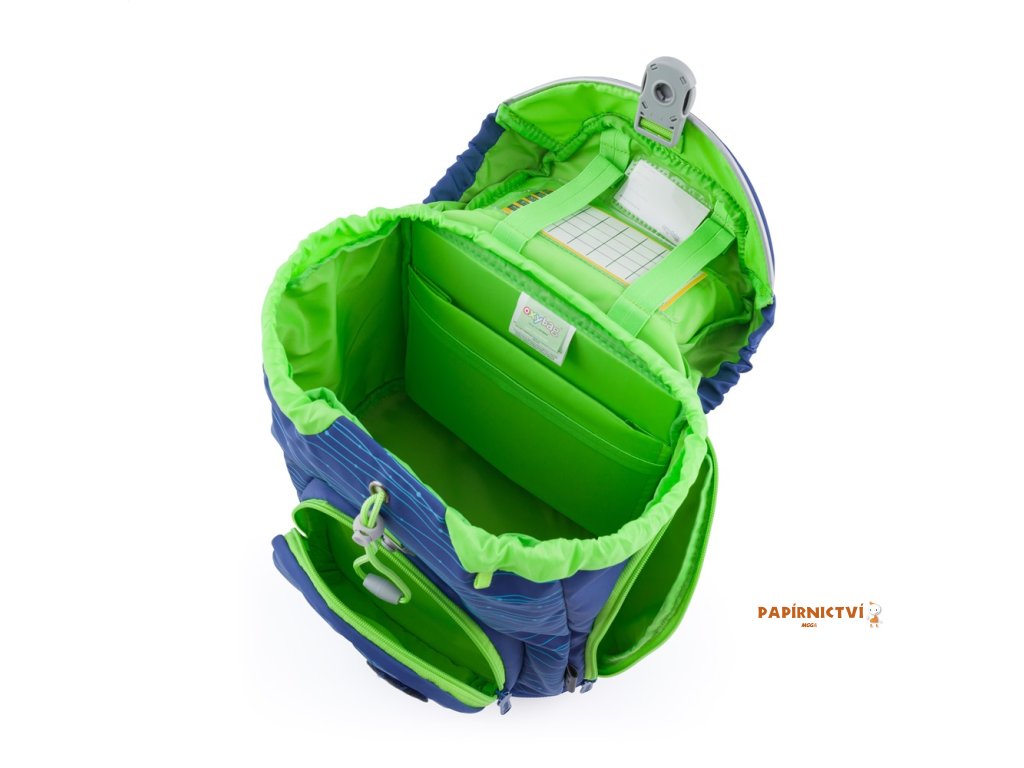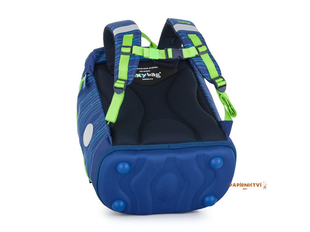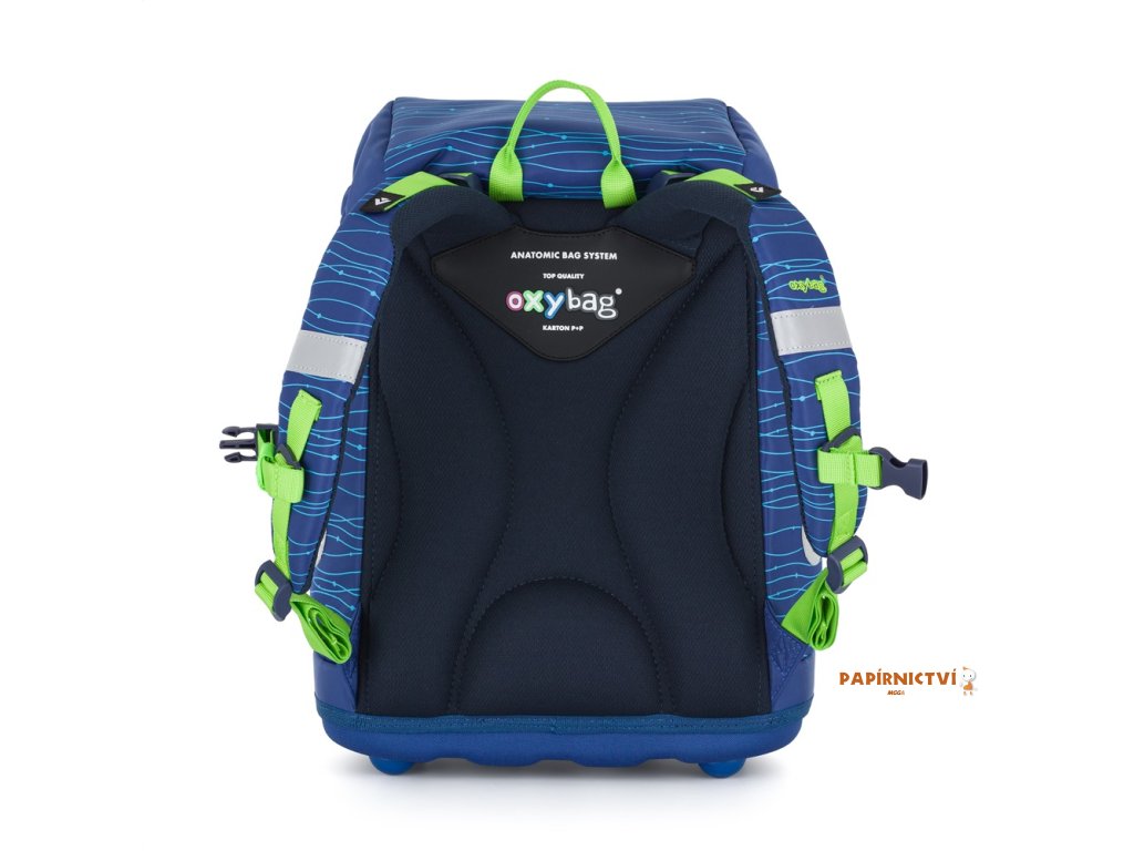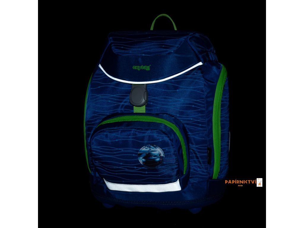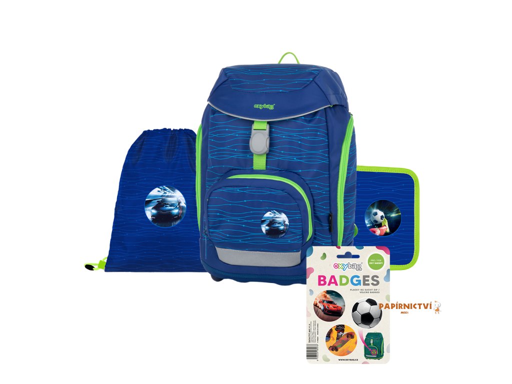 Výhodný set batohu, penálu, sáčku na cvičky a vyměnitelných placek. Školní batoh z řady OXY Sherpy vhodný od 1. – 3. třídy. Anatomicky tvarovaný zádový panel, polstrované ramenní popruhy a nastavitelný hrudní popruh zajistí záda jako v bavlnce každému školákovi. Pevné dno opatřené plastovými nožkami zabraňuje převrhnutí samostatně stojícího batohu. Vnitřní rozřaďovač zajistí pořádek. Zapínání hlavní komory pomocí stahovací šňůrky je zabezpečeno magnetickým zapínáním Fidlock, které jde snadno otevřít jednou rukou. Na bocích jsou dvě kapsy na zip vhodné k ukládání lahve na pití, v přední části batohu je menší kapsička na svačinu. Nechybí řada reflexních prvků. Díky vyměnitelným plackám na suchý zip si může svou aktovku vyzdobit každý školák. Batoh je vhodný pro děti vysoké od 121 cm. Objem: 26 l. Hmotnost: 950 g. Nosnost: 10 kg. Materiál 100% polyester. Sada vyměnitelných placek: Tři vyměnitelné placky na suchý zip k ozdobení batohu OXY Sherpy.