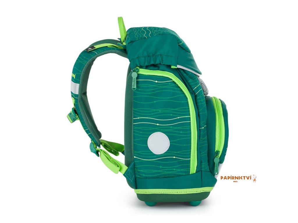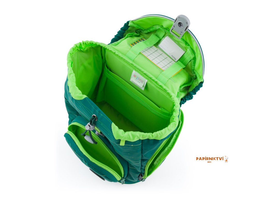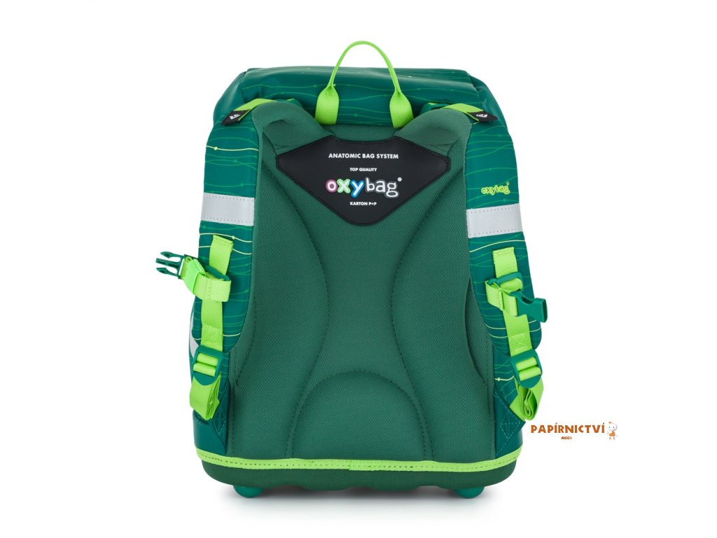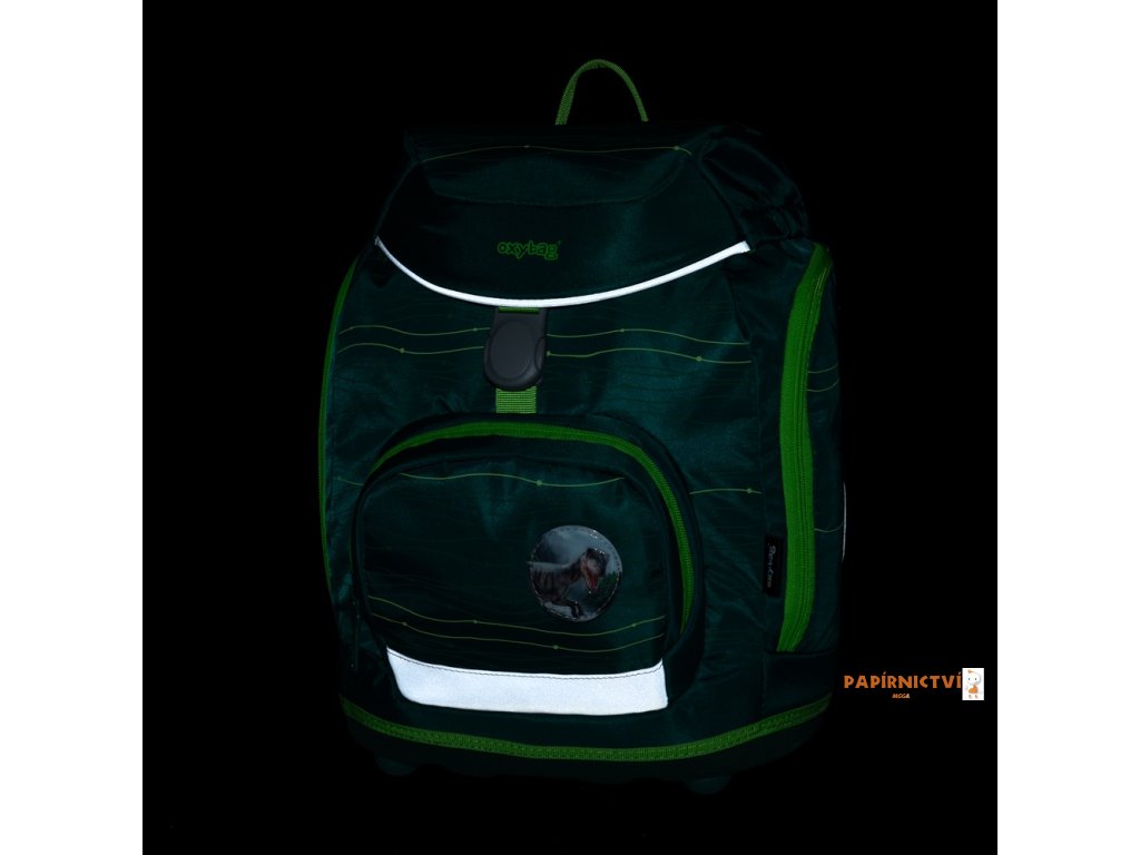 Výhodný set batohu, penálu, sáčku na cvičky a vyměnitelných placek. Školní batoh z řady OXY Sherpy je ideální volbou pro děti od 1. do 3. třídy. Batoh má anatomicky tvarovaný zádový panel, polstrované ramenní popruhy a nastavitelný hrudní popruh, což zajišťuje pohodlí a správné držení těla. Pevné dno opatřené plastovými nožkami zabraňuje převrhnutí a umožňuje batohu stát samostatně. Vnitřní rozřaďovač pomáhá udržet pořádek, zatímco zapínání hlavní komory na stahovací šňůrku a magnetické zapínání je praktické a snadno ovladatelné jednou rukou. Boční kapsy na zip jsou ideální na lahev s pitím, přední kapsa na svačinu poskytuje další úložný prostor. Nechybí reflexní prvky pro větší bezpečnost dítěte. Díky vyměnitelným plackám na suchý zip si může každý školák přizpůsobit design batohu podle svého vkusu. Batoh je doporučen pro děti vysoké od 121 cm. Délka zádového panelu je 33 cm, objem činí 28 l, hmotnost batohu je 950 g a jeho nosnost je 10 kg.