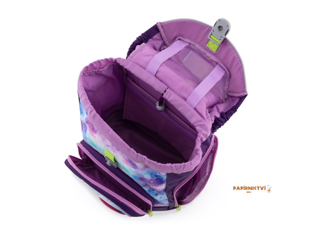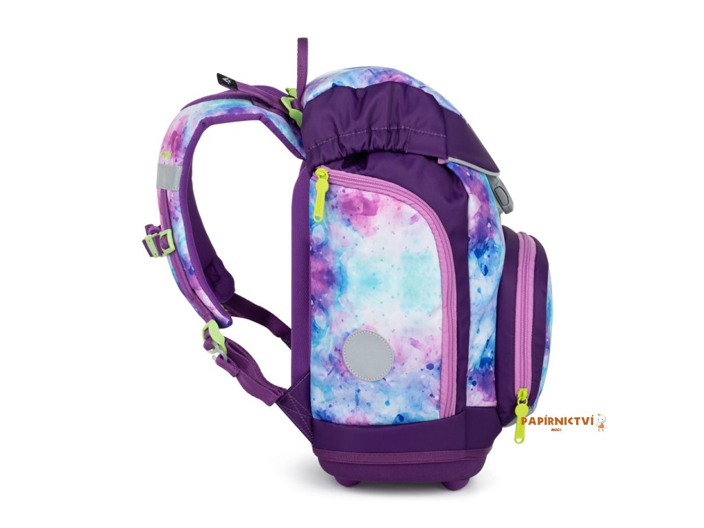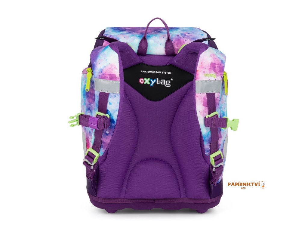 Výhodný set batohu, penálu, sáčku na cvičky a vyměnitelných placek. Školní batoh z řady OXY Sherpy je ideální volbou pro děti od 1. do 3. třídy. Batoh má anatomicky tvarovaný zádový panel, polstrované ramenní popruhy a nastavitelný hrudní popruh, což zajišťuje pohodlí a správné držení těla. Pevné dno opatřené plastovými nožkami zabraňuje převrhnutí a umožňuje batohu stát samostatně. Vnitřní rozřaďovač pomáhá udržet pořádek, zatímco zapínání hlavní komory na stahovací šňůrku a magnetické zapínání je praktické a snadno ovladatelné jednou rukou. Boční kapsy na zip jsou ideální na lahev s pitím, přední kapsa na svačinu poskytuje další úložný prostor. Nechybí reflexní prvky pro větší bezpečnost dítěte. Díky vyměnitelným plackám na suchý zip si může každý školák přizpůsobit design batohu podle svého vkusu. Batoh je doporučen pro děti vysoké od 121 cm. Délka zádového panelu je 33 cm, objem činí 28 l, hmotnost batohu je 950 g a jeho nosnost je 10 kg.