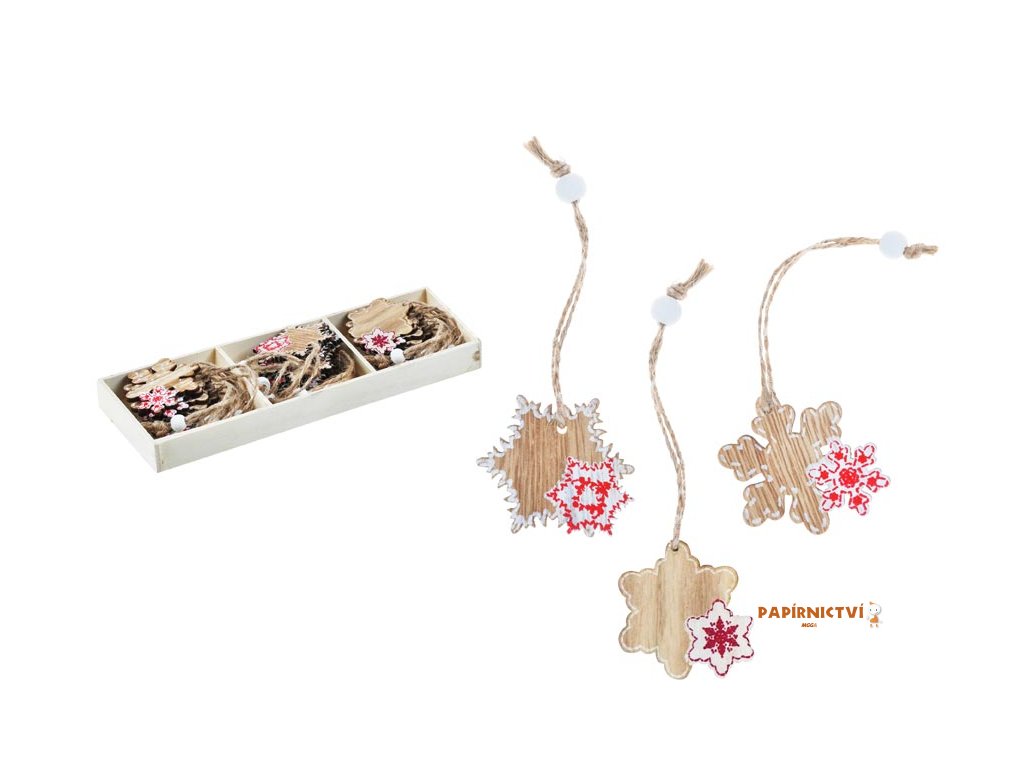 - 9 ks vánočních dřevěných ozdob (vločky)