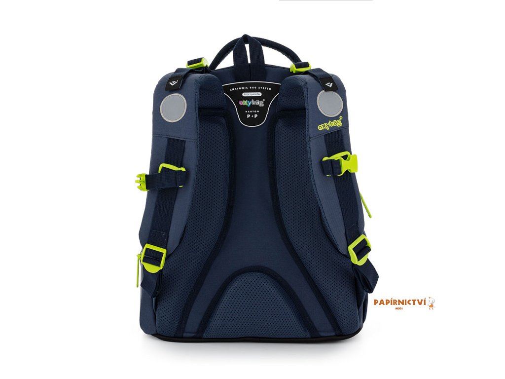Školní batoh z řady OXY GO na sebe jednoduše strhne pozornost. Designové provedení zaujme každého kluka i holku. Perfektní tvar batohu ukrývá nejen anatomicky tvarovaná a prodyšná záda, ale také možnost nastavit si ramenní popruhy pro lepší pohodlí a komfortnější nošení. Dvě vnitřní kapsy nabízí dostatek prostoru pro učebnice, sešity i věci na volný čas. Pevné dno zabraňuje jak ušpinění zvenku, tak protečení čehokoliv, co se vylije uvnitř. Po stranách najdete dvě větší kapsy. Batoh nabízí velkorysé množství nejrůznějších kapes, ať už velkých nebo i malých. Hledání klíčů v batohu proto nehrozí. Lehký, přitom dostatečně velký pro všechny věci, které chce mít každý školák po ruce. Mysleli jsme také na bezpečnost vašich dětí, proto batohu nechybějí reflexní prvky. Batoh je ideální na první stupeň 1. - 3. třídu pro děti vysoké od 125 cm.