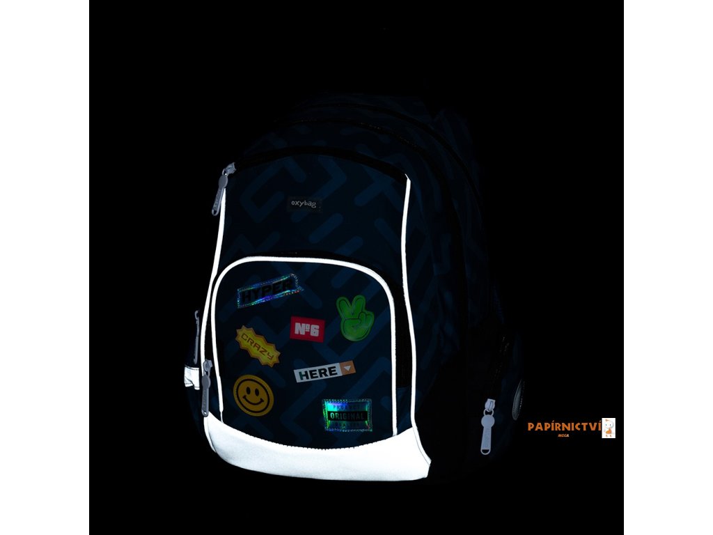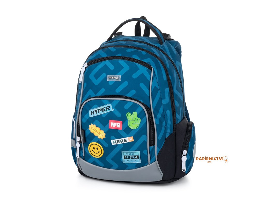 Školní batoh z řady OXY GO na sebe jednoduše strhne pozornost. Designové provedení zaujme každého kluka i holku. Perfektní tvar batohu ukrývá nejen anatomicky tvarovaná a prodyšná záda, ale také možnost nastavit si ramenní popruhy pro lepší pohodlí a komfortnější nošení. Dvě vnitřní kapsy nabízí dostatek prostoru pro učebnice, sešity i věci na volný čas. Pevné dno zabraňuje jak ušpinění zvenku, tak protečení čehokoliv, co se vylije uvnitř. Po stranách najdete dvě větší kapsy. Batoh nabízí velkorysé množství nejrůznějších kapes, ať už velkých nebo i malých. Hledání klíčů v batohu proto nehrozí. Lehký, přitom dostatečně velký pro všechny věci, které chce mít každý školák po ruce. Mysleli jsme také na bezpečnost vašich dětí, proto batohu nechybějí reflexní prvky. Batoh je ideální na první stupeň 1. - 3. třídu pro děti vysoké od 125 cm.