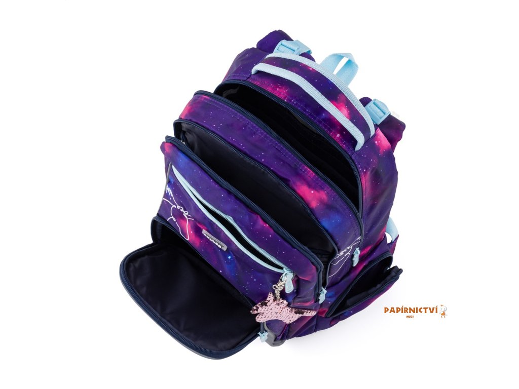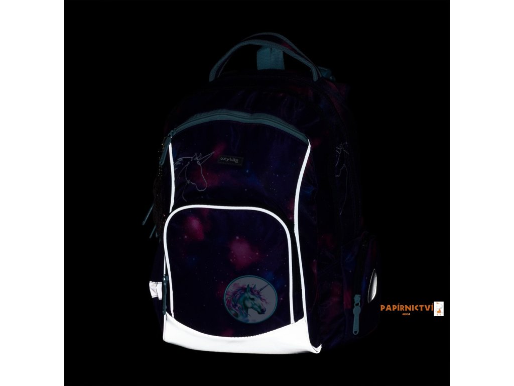 Školní batoh z řady OXY GO na sebe jednoduše strhne pozornost. Designové provedení zaujme každého školáka. Perfektní tvar batohu ukrývá nejen anatomicky tvarovaná a prodyšná záda, ale také možnost nastavit si ramenní popruhy pro lepší pohodlí a komfortnější nošení. Navíc je batoh opatřen přidávnými háčky pro uchycení dlouhých popruhů. Dvě vnitřní kapsy nabízí dostatek prostoru pro učebnice, sešity i věci na volný čas. Pevné nepromokavé dno zabraňuje jak ušpinění zvenku, tak protečení čehokoliv, co se vylije uvnitř. Po stranách najdete dvě menší kapsy, jednu otevřenou a druhou na zip. Batoh nabízí velkorysé množství nejrůznějších kapes, ať už velkých nebo i malých. Lehký, přitom dostatečně velký pro všechny věci, které chce mít každý školák po ruce. Mysleli jsme také na bezpečnost vašich dětí, proto batohu nechybějí reflexní prvky. Batoh je ideální na první stupeň do 1. - 3. třídy pro děti vysoké od 125 cm. Délka zádového panelu je 39 cm, objem činí 22 l, hmotnost batohu je 930 g a jeho nosnost je 8 kg.