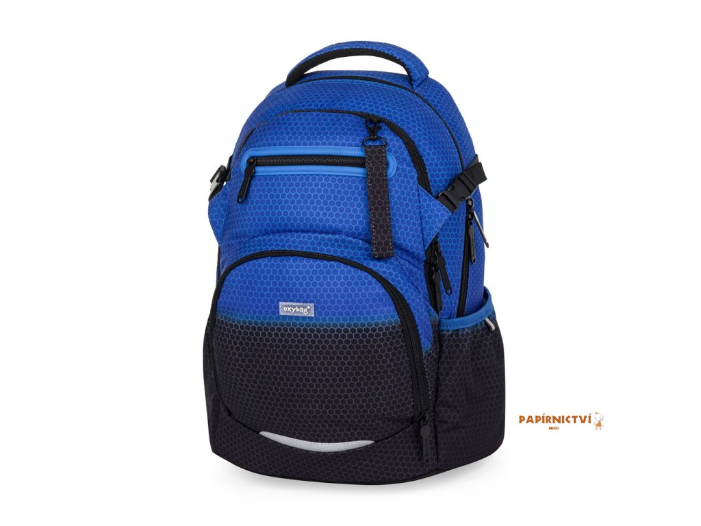 Školní batoh z řady OXY Ombre je ideální pro školáky od 3. třídy. Moderní design ve stylu ombre zaujme na první pohled. Anatomicky tvarovaný zádový panel, polstrované ramenní popruhy a nastavitelný hrudní popruh zajistí záda jako v bavlnce každému školákovi. Pevné dno zabraňuje převrhnutí samostatně stojícího batohu. Batoh disponuje dvěma prostornými kapsami na všechny potřebné školní pomůcky. V bočních postranních kapsách na gumu je prostor pro láhev na pití, která je snadno dostupná pro doplnění pitného režimu každého školáka. Do přední kapsičky se snadno schová menší svačina. Nechybí řada reflexních prvků. Batoh je vhodný pro děti vysoké od 136 cm. Délka zádového panelu je 43 cm, objem činí 28 l, hmotnost batohu je 960 g a jeho nosnost je 8 kg.