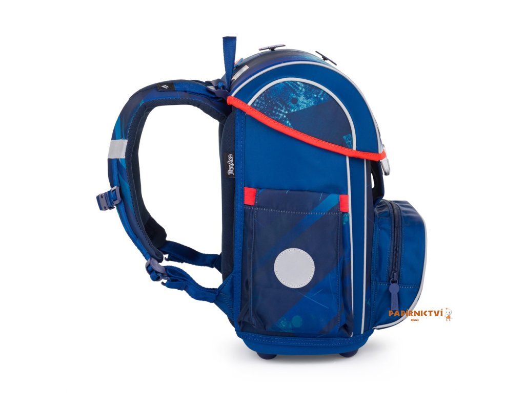 Školní aktovka z řady Premium je anatomicky tvarovaná a zajišťuje tak správné usazení na zádech. Vyztužená záda a vnitřní výztuha udržují stálý tvar batohu. Polstrování je z příjemného prodyšného materiálu, široké měkčené popruhy jsou navrženy tak, aby dokonale přilnuly a rovnoměrně zatížily ramena dítěte. Aktovka se skládá z jedné prostorné komory, kam se pohodlně vejdou všechny školní pomůcky pro děti v 1. a ve 2. třídě. Navíc je opatřena přidávnými háčky pro uchycení popruhů. Dno batohu je z pevného materiálu, chrání tím obsah před převržením a vysypáním. Zapínání je na bezpečnostní kovovou přezku s reflexní odrazkou. Přední kapsička je určena na svačinu, nechybí řada reflexních prvků, díky kterým je aktovka viditelnější. Délka zádového panelu: 33 cm. Objem: 27 l. Nosnost: 8 kg.