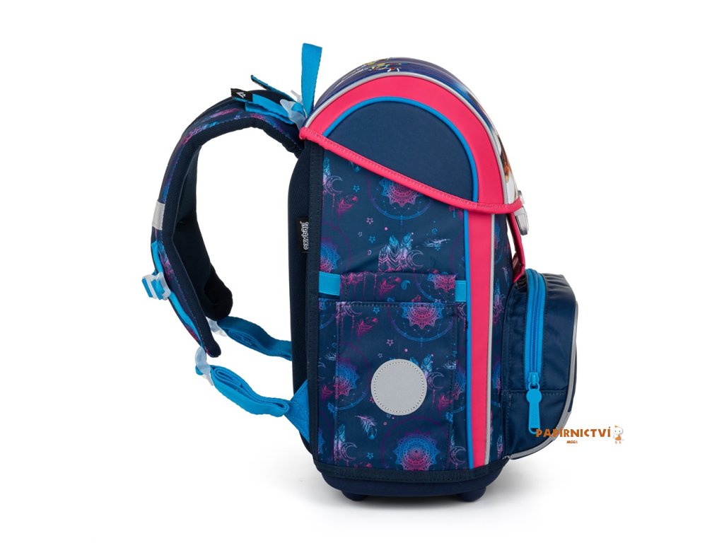 Školní aktovka z řady Premium je anatomicky tvarovaná a zajišťuje tak správné usazení na zádech. Vyztužená záda a vnitřní výztuha udržují stálý tvar batohu. Polstrování je z příjemného prodyšného materiálu, široké měkčené popruhy jsou navrženy tak, aby dokonale přilnuly a rovnoměrně zatížily ramena dítěte. Aktovka se skládá z jedné prostorné komory, kam se pohodlně vejdou všechny školní pomůcky pro děti v 1. a ve 2. třídě. Dno batohu je z pevného materiálu, chrání tím obsah před převržením a vysypáním. Zapínání je na bezpečnostní přezku. Přední kapsička je určena na svačinu, nechybí řada reflexních prvků, díky kterým je aktovka viditelnější. Objem: 28 l. Nosnost: 8kg.