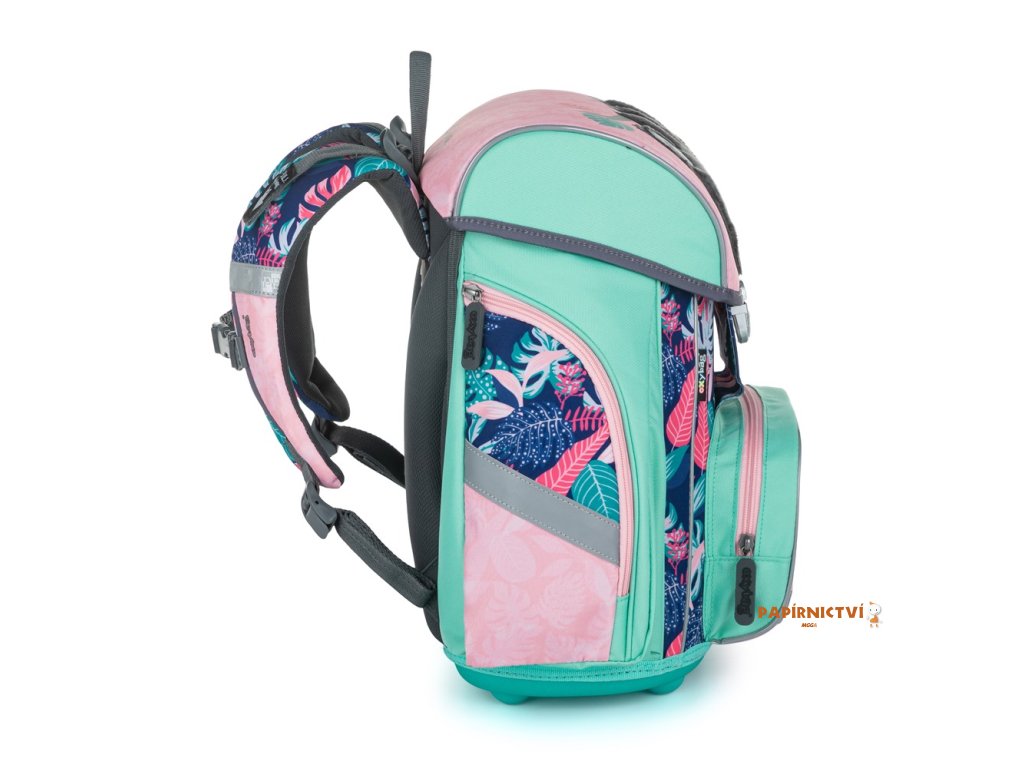 Školní aktovka z řady Premium je anatomicky tvarovaná a zajišťuje tak správné usazení na zádech. Vyztužená záda a vnitřní výztuha udržují stálý tvar batohu. Polstrování je z příjemného prodyšného materiálu, široké měkčené popruhy jsou navrženy tak, aby dokonale přilnuly a rovnoměrně zatížily ramena dítěte. Aktovka se skládá z jedné prostorné komory, kam se pohodlně vejdou všechny školní pomůcky pro děti v 1. a ve 2. třídě. Dno batohu je z pevného materiálu, chrání tím obsah před převržením a vysypáním. Zapínání je na bezpečnostní přezku. Přední kapsička je určena na svačinu, nechybí řada reflexních prvků, díky kterým je aktovka viditelnější. Objem: 28 l. Nosnost: 8kg.