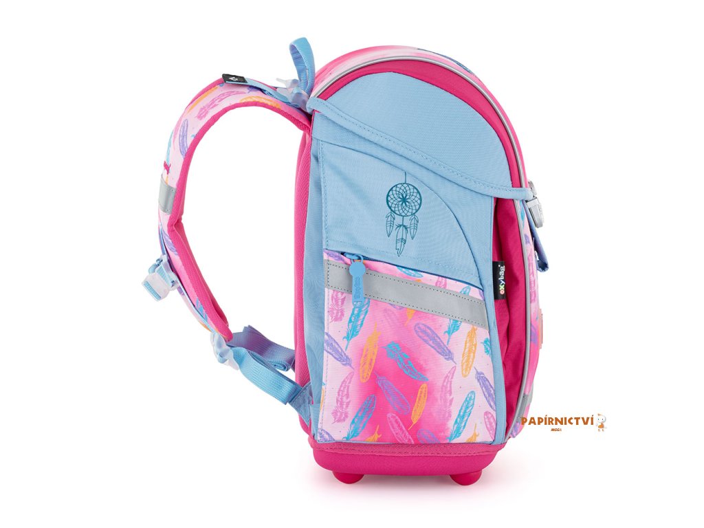Školní batoh řady Premium Light nabízí kvalitu, prostor na školní potřeby i odlehčenou konstrukci pro pohodlnější nošení. Díky odlehčenému materiálu váží batoh pouhých 970 g. Polstrování je z příjemného prodyšného materiálu, široké měkčené popruhy jsou navrženy tak, aby dokonale přilnuly a rovnoměrně zatížily ramena dítěte. Pro pohodlnější nošení je batoh dále vybaven přitažnými a hrudními popruhy. Batohy ocení především ti nejmladší školáci s výškou od 121 cm. Nechybí ani praktické reflexní prvky, vnitřní rozřaďovač i velké množství kapes. Objem: 27 l.