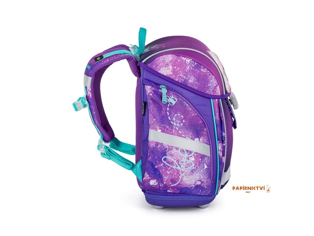 Školní batoh řady Premium Light nabízí kvalitu, prostor na školní potřeby i odlehčenou konstrukci pro pohodlnější nošení. Díky odlehčenému materiálu váží batoh pouhých 970 g. Polstrování je z příjemného prodyšného materiálu, široké měkčené popruhy jsou navrženy tak, aby dokonale přilnuly a rovnoměrně zatížily ramena dítěte. Pro pohodlnější nošení je batoh dále vybaven přitažnými a hrudními popruhy. Batoh je i navíc opatřen přidávnými háčky pro uchycení popruhů. Batohy ocení především ti nejmladší školáci s výškou od 121 cm. Nechybí ani praktické reflexní prvky, jednoduché magnetické zapínání, vnitřní rozřaďovač i velké množství kapes. Batoh Premium Light bude tak perfektním parťákem nejen do školy. Délka zádového panelu: 33 cm. Objem: 26 l. Nosnost: 8 kg..