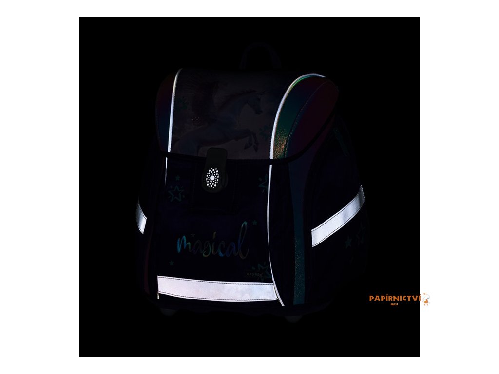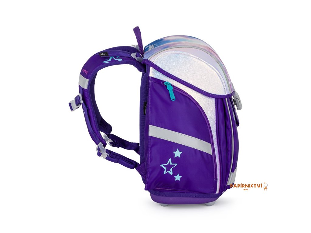 Školní batoh řady Premium Light nabízí kvalitu, prostor na školní potřeby i odlehčenou konstrukci pro pohodlnější nošení. Díky odlehčenému materiálu váží batoh pouhých 970 g. Polstrování je z příjemného prodyšného materiálu, široké měkčené popruhy jsou navrženy tak, aby dokonale přilnuly a rovnoměrně zatížily ramena dítěte. Pro pohodlnější nošení je batoh dále vybaven přitažnými a hrudními popruhy. Batoh je i navíc opatřen přidávnými háčky pro uchycení popruhů. Batohy ocení především ti nejmladší školáci s výškou od 121 cm. Nechybí ani praktické reflexní prvky, jednoduché magnetické zapínání, vnitřní rozřaďovač i velké množství kapes. Batoh Premium Light bude tak perfektním parťákem nejen do školy. Délka zádového panelu: 33 cm. Objem: 26 l. Nosnost: 8 kg..